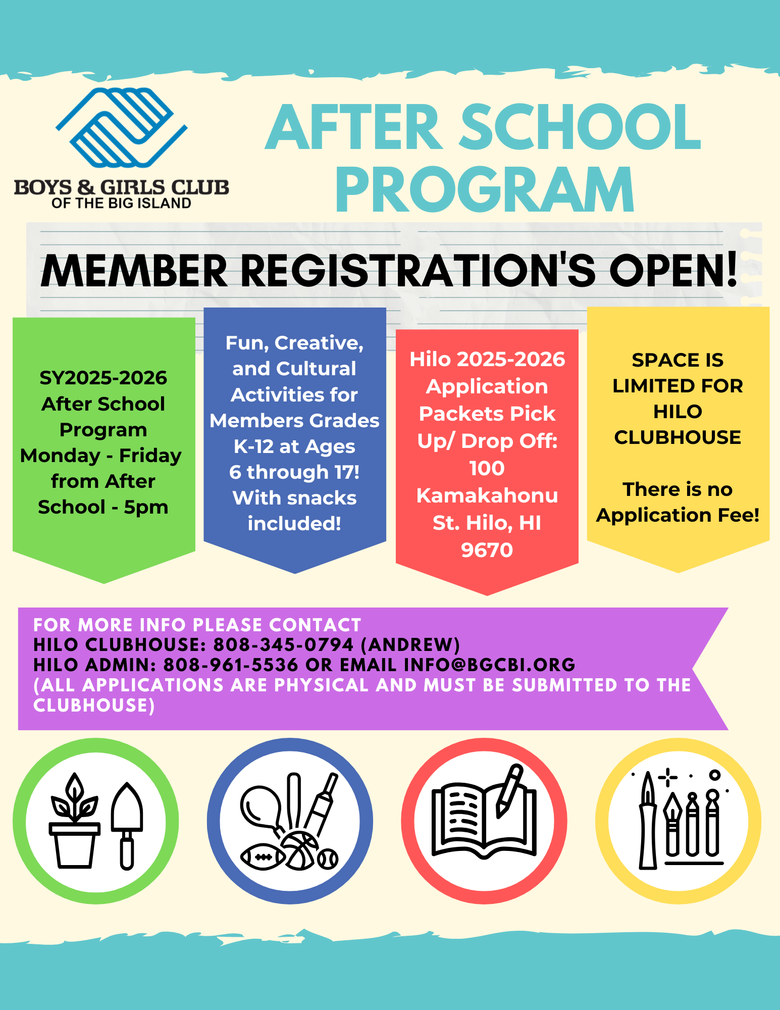 Boys & Girls Club of the Big Island offers children throughout Hawaii Island a fun, safe and supervised place after school to be engaged, to learn and to grow.