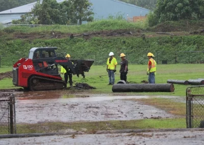 Mahalo to Hawai'i Electric Light employees Tad Araki, Chris Chun-Hoon, Peter Grace, Mike Kameoka, Kerry Kanakaole, Owen Kaneshiro, Garner Kelii, Joshua Lau, Bryan Lum, Dane Souza, Kyle Sugi, Jason Tanaka, and Kevin Waltjen who turned out in force to remove the deteriorating poles and equipment to make the fields safe for our keiki.